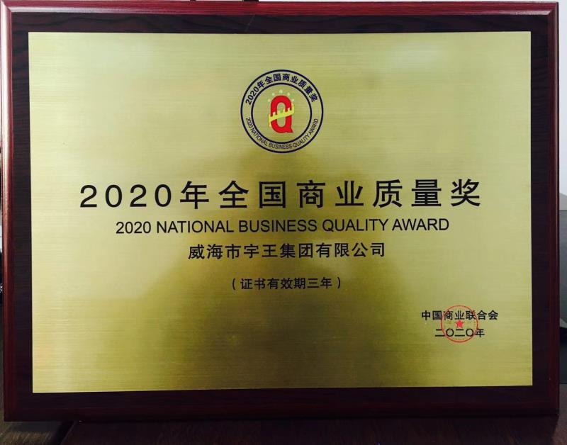 會上,宇王集團榮獲2020年全國商業質量獎。