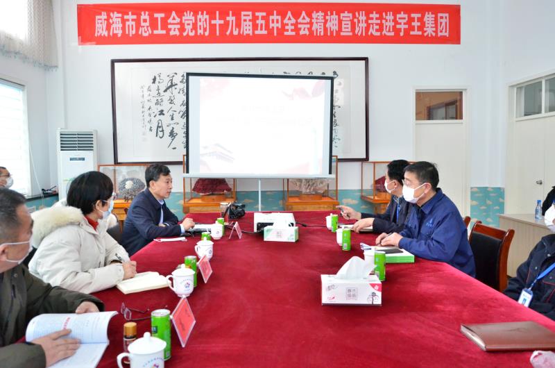 1229日,威海市總工會黨的十九屆五中全會精神宣講走進宇王集團,宇王集團被授予山東省農林水系統軍民融合發展榜樣以及勞模和工匠人才創新工作室牌匾。