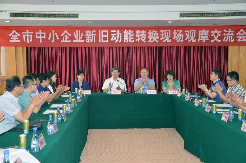 6月9日上午,市中小企業局、市中小企業協會共同組織召開了全市中小企業新舊動能轉換現場觀摩交流會。市中小企業局局長蔡琳,市中小企業協會會長、宇王集團董事長苗強,與中小企業協會常務理事成員單位及相關骨干企業董事長、總經理一起參加會議。