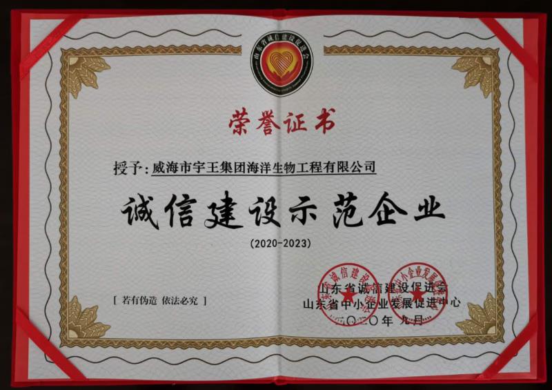 9月28日,學(xué)習(xí)貫徹山東省社會信用條例暨全省企業(yè)誠信建設(shè)示范工作會議在濟(jì)南召開。會上,宇王集團(tuán)海洋生物工程有限公司榮獲山東省“誠信建設(shè)示范企業(yè)",白義化經(jīng)理榮獲“山東省誠信建設(shè)示范企業(yè)領(lǐng)軍人物”。